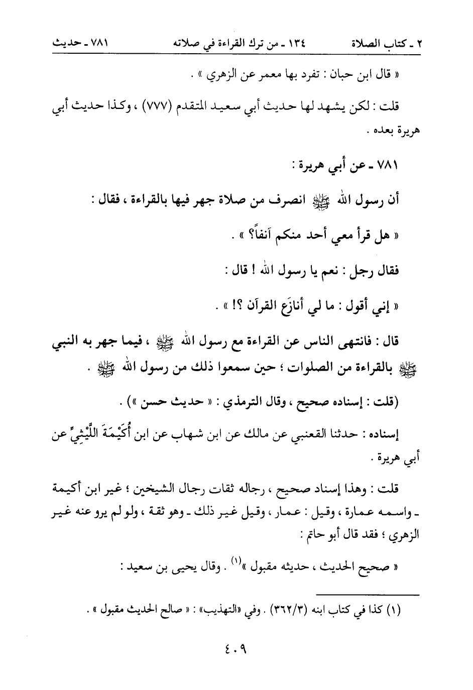 قال: فانتهى الناس عن القراءة مع رسول الله صَلَّى اللَّهُ عَلَيْهِ وَسَلَّمَ، فيما جهر به النبي