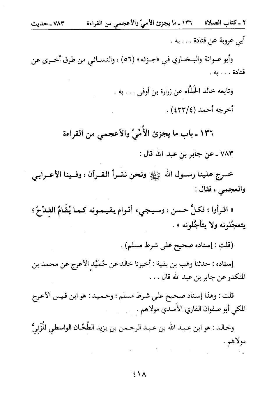 136- باب ما يجزئ الأُمِّيَّ والأعجمي من القراءة