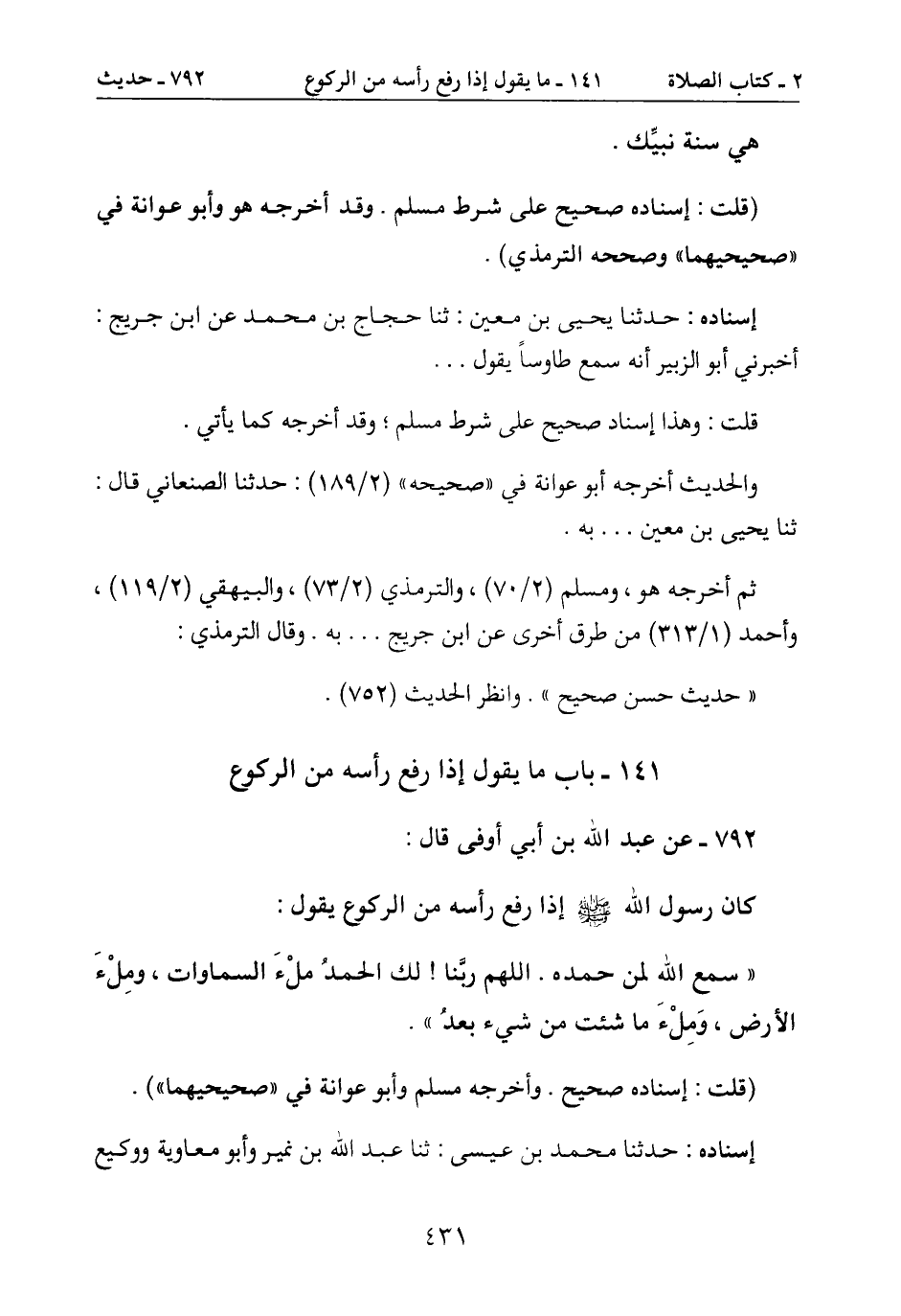 141- باب ما يقول إذا رفع رأسه من الركوع