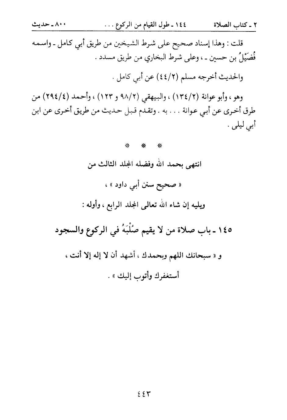 145- باب صلاة من لا يقيم صُلْبَهُ في الركوع والسجود