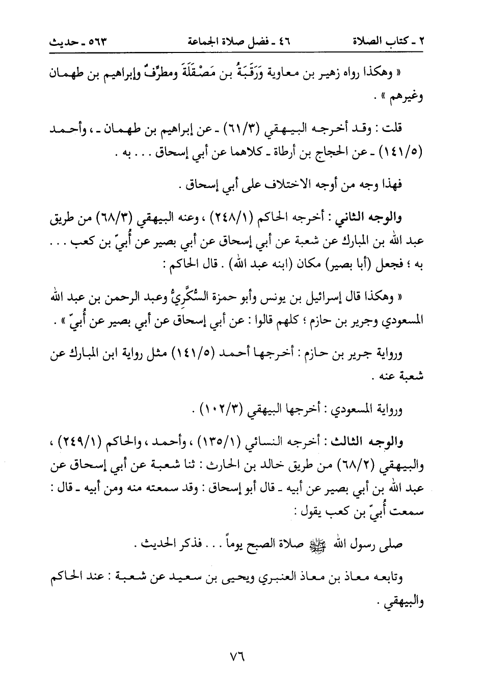 عبد الله بن المبارك عن شعبة عن أبي إسحاق عن أبي بصير عن أُبيّ بن كعب ...