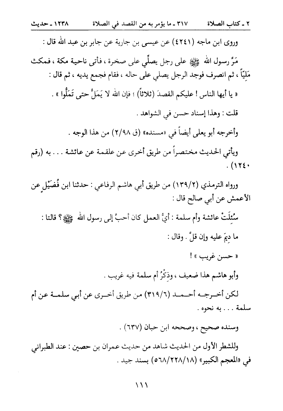 " يا أيها الناس! عليكم القصدَ (ثلاثاً) ؛ فإن الله لا يَمَل حتى تَمَلوا ".