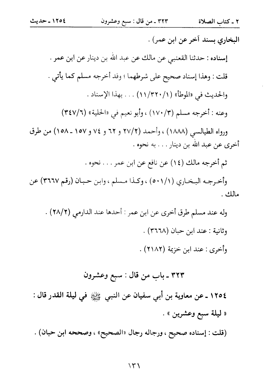 1254- عن معاوبة بن أبي سفيان عن النبي صَلَّى اللَّهُ عَلَيْهِ وَسَلَّمَ في ليلة القدر قال: