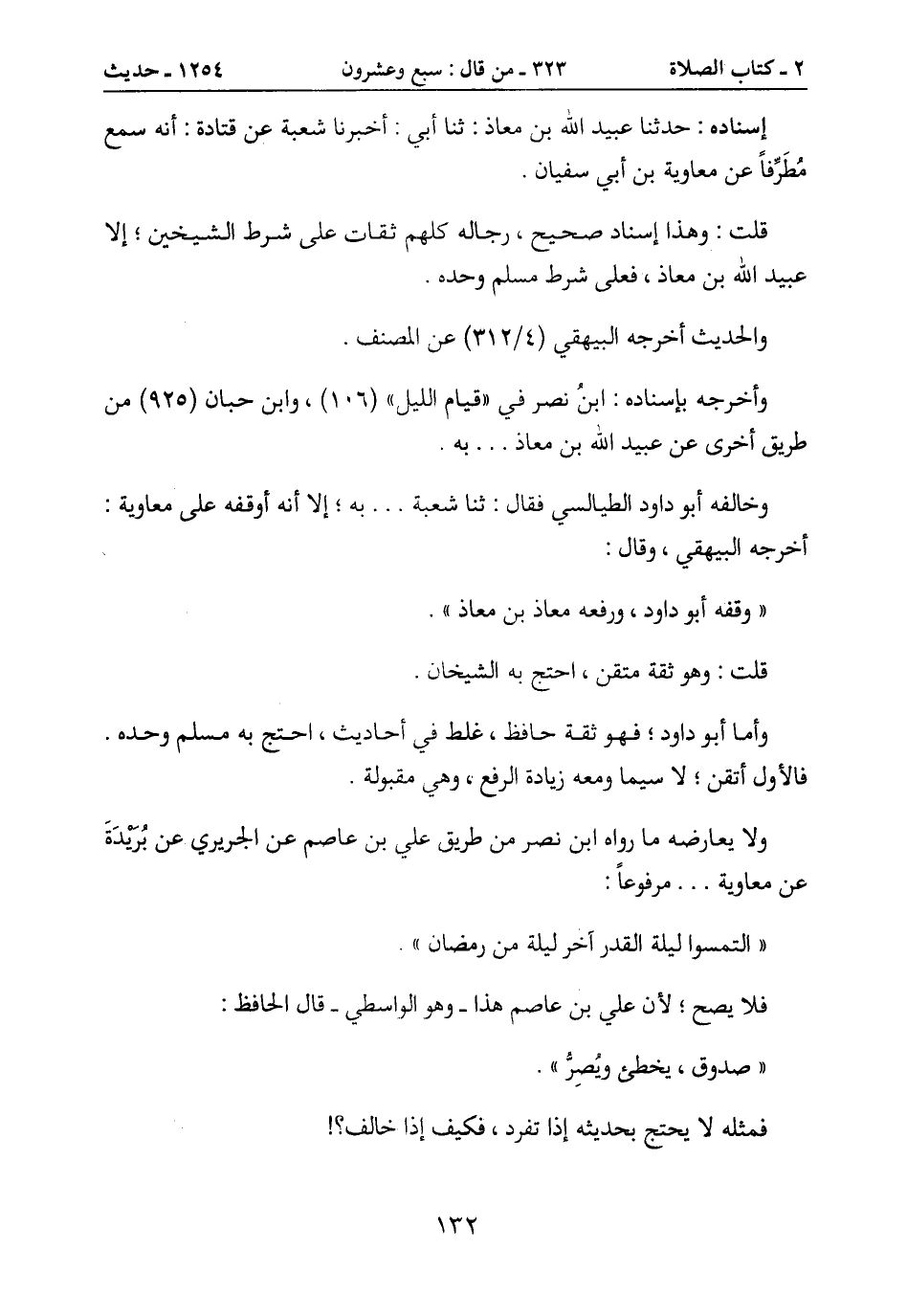 " وقفه أبو داود، ورفعه معاذ بن معاذ ".