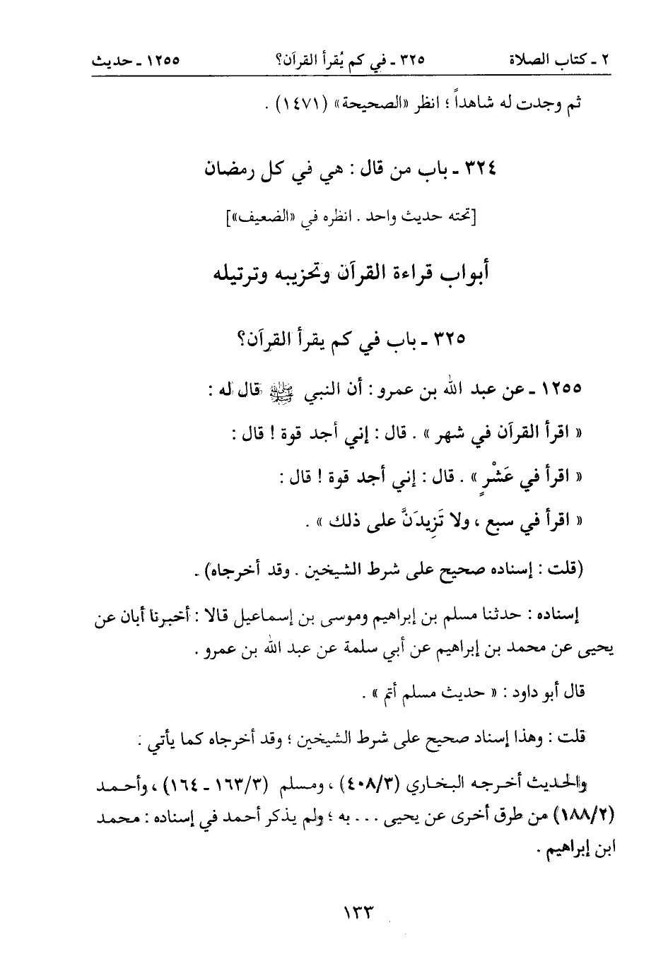 325- باب في كم يقرأ القرآن؟