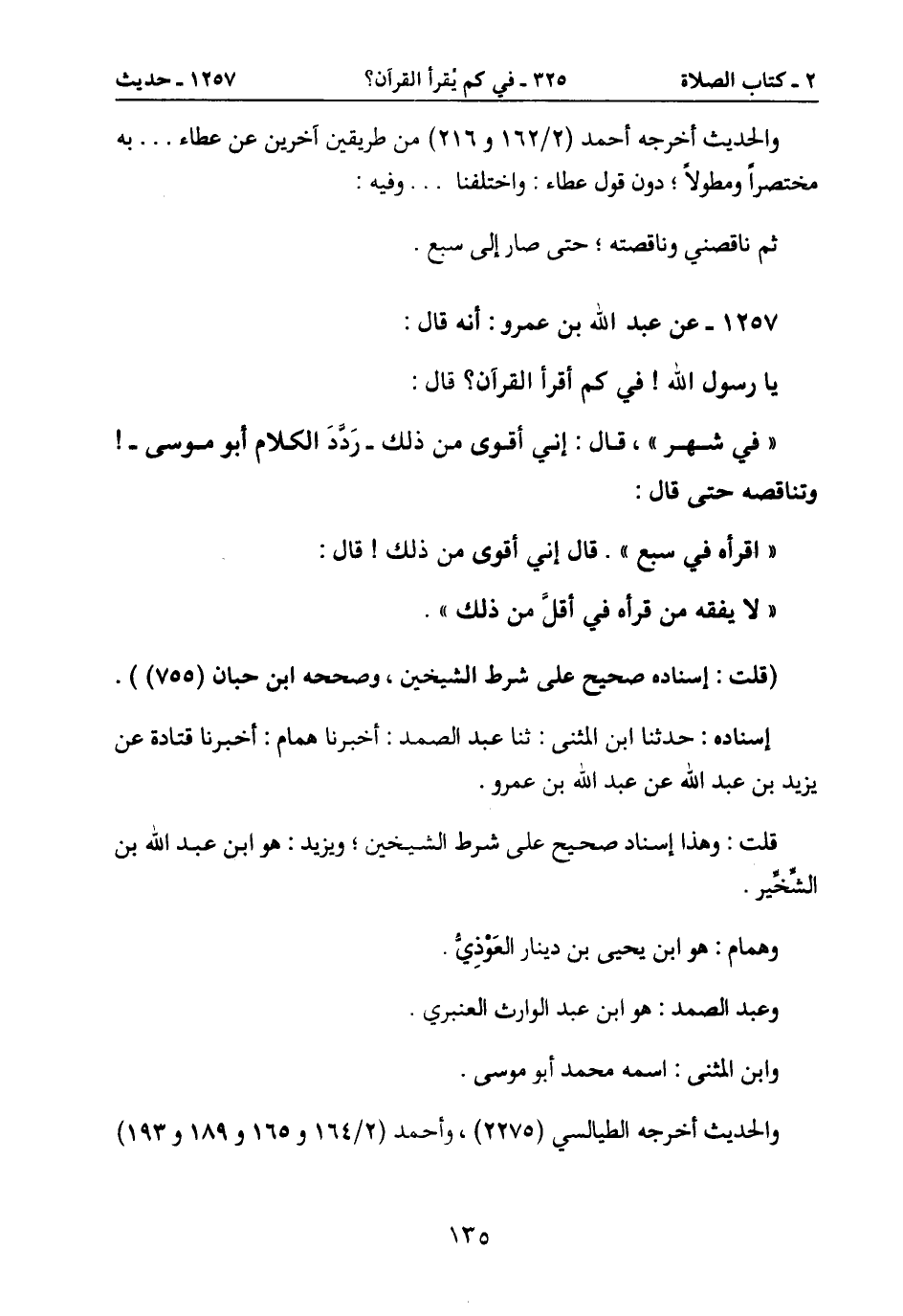 1257- عن عبد الله بن عمرو: أنه قال:
