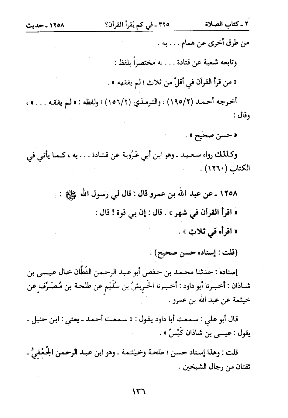 1258- عن عبد الله بن عمرو قال: قال لي رسول الله صَلَّى اللَّهُ عَلَيْهِ وَسَلَّمَ:
