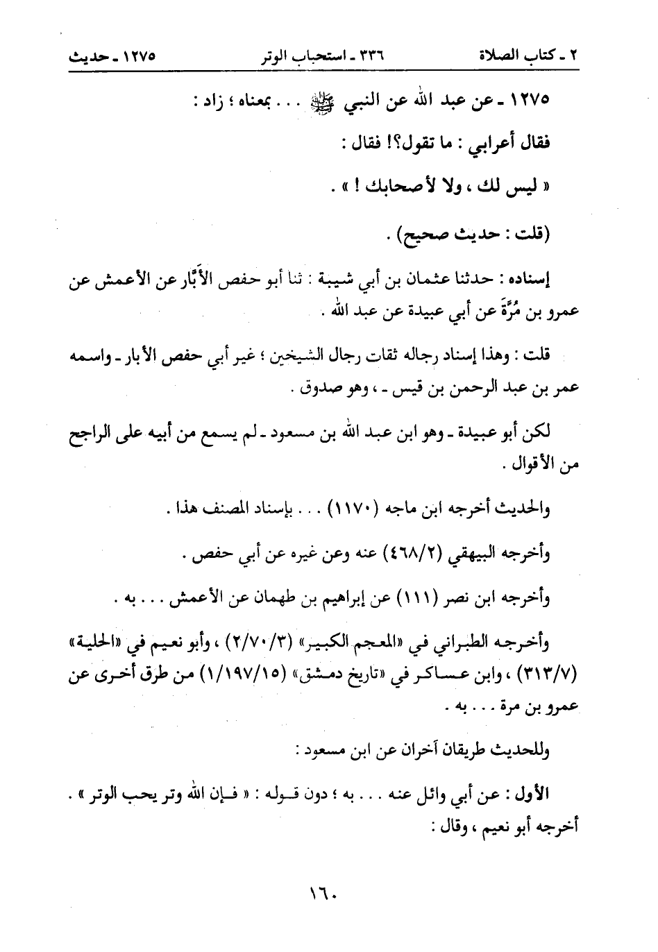 الأول: عن أبي وائل عنه ... به؛ دود قوله: " فإن الله وتر يحب الوتر ".