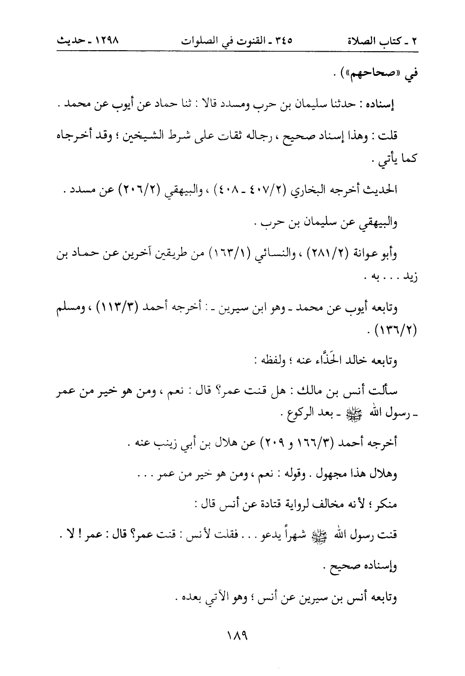 قنت رسول الله صَلَّى اللَّهُ عَلَيْهِ وَسَلَّمَ شهراً يدعو ... فقلت لأنس: قنت عمر؟ قال: عمر! لا.