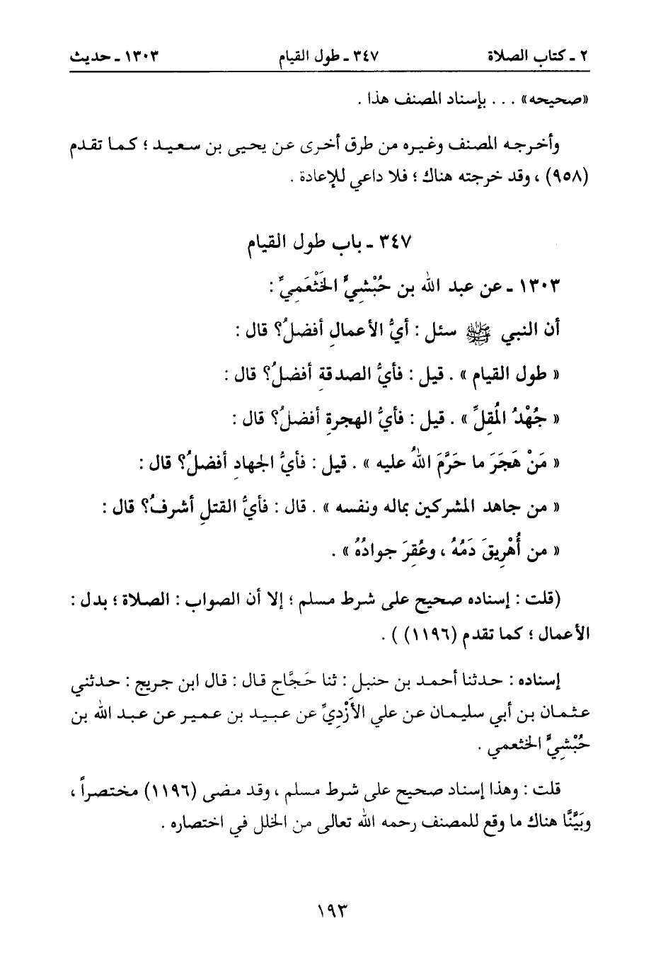 1303- عن عبد الله بن حُبْشِي الخَثْعَمي: