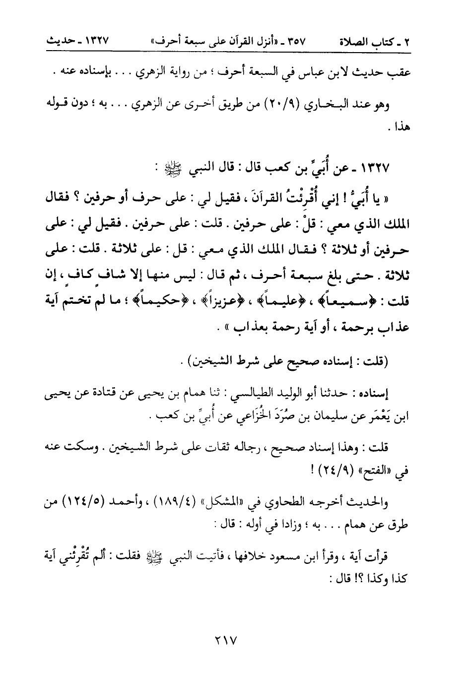 1327- عن أُبَيِّ بن كعب قال: قال النبي صَلَّى اللَّهُ عَلَيْهِ وَسَلَّمَ.: