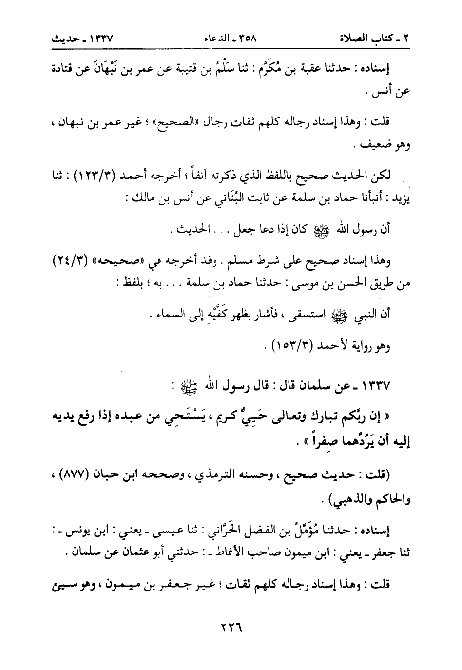 1337- عن سلمان قال: قال رسول الله صَلَّى اللَّهُ عَلَيْهِ وَسَلَّمَ: