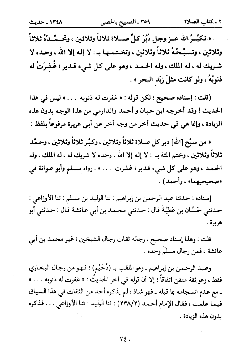 وثلاثين، وتسبحه ثلاثاً وثلاثين، ووتختمها بـ: لا إله إلا الله، وحده لا