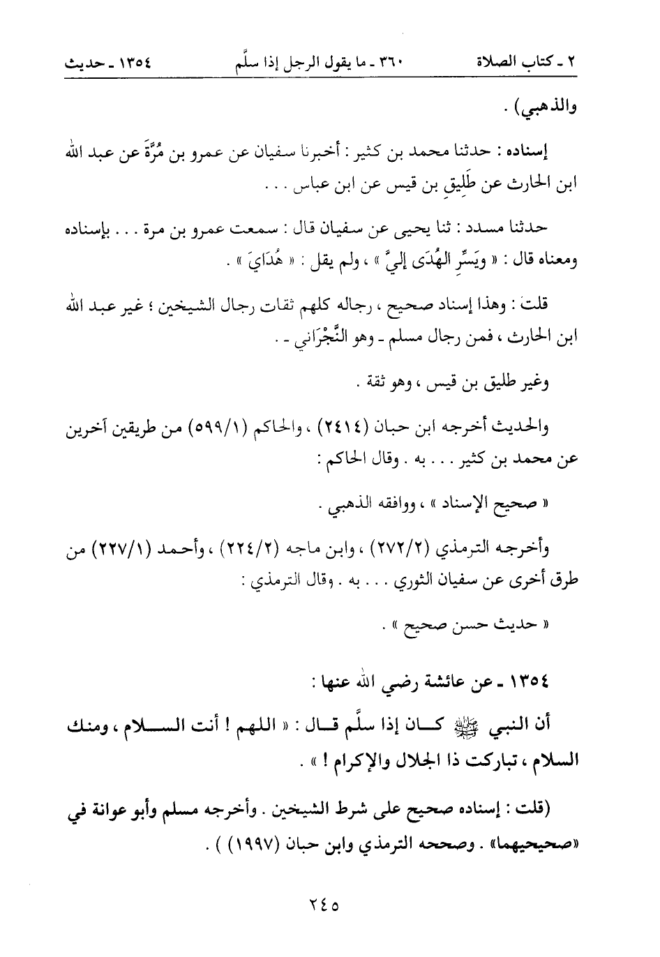 أن النبي صَلَّى اللَّهُ عَلَيْهِ وَسَلَّمَ كان إذا سلَّم قال: " اللهم! أنت السلام، ومنك