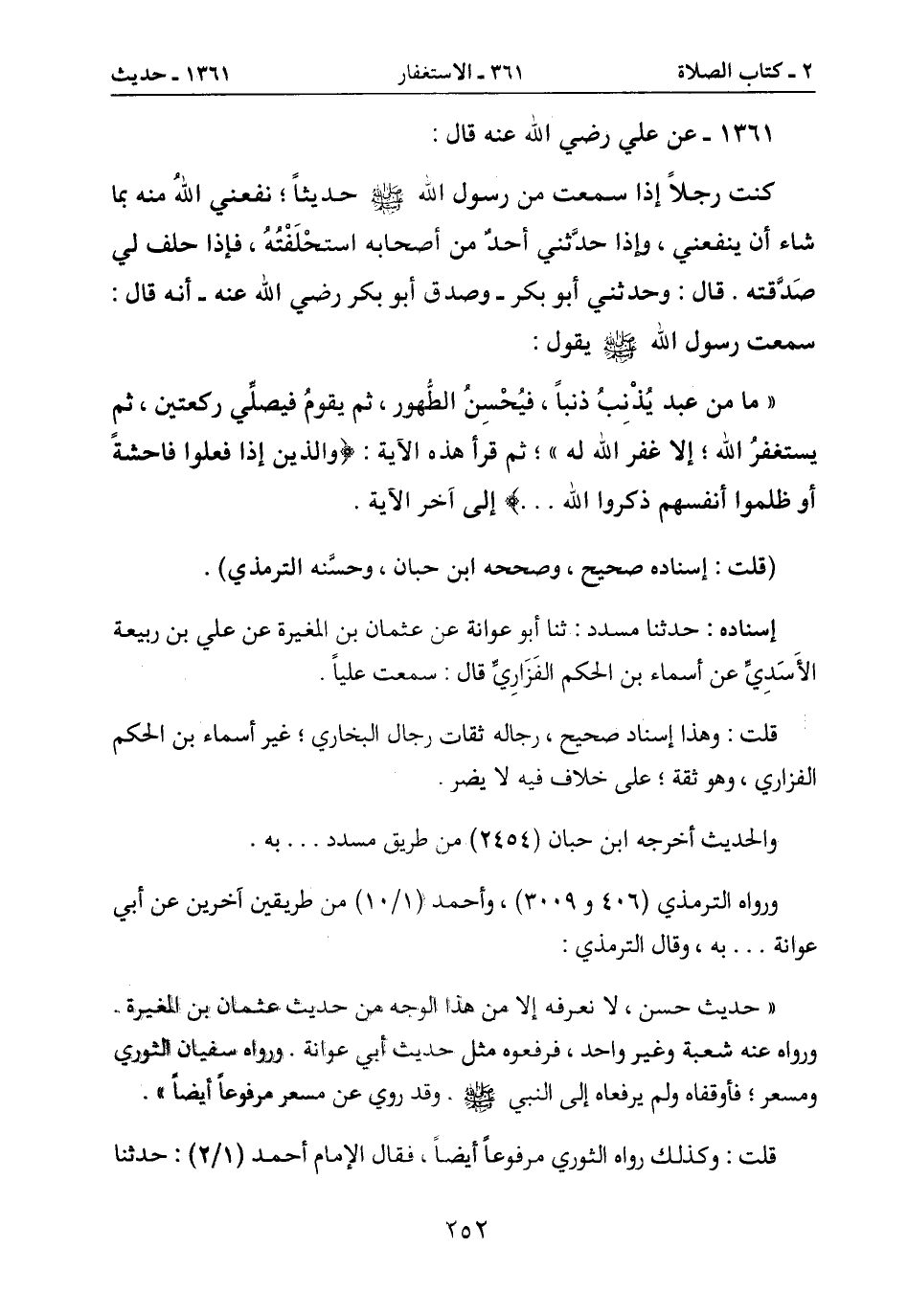 يستغفرُ الله؛ إلا غفر الله له "؛ ثم قرأ هذه الآية: (والذين إذا فعلوا فاحشة