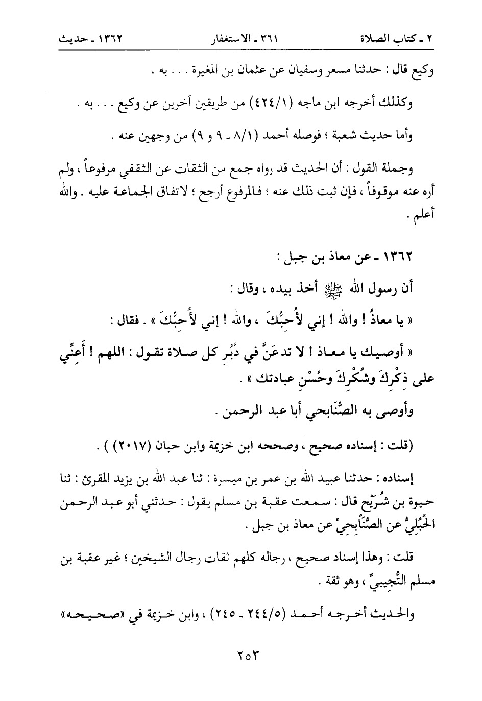 " أوصيك يا معاذ! لا تدعَنَّ في دُبُرِ كل صلاة تقول: اللهم! آعِني