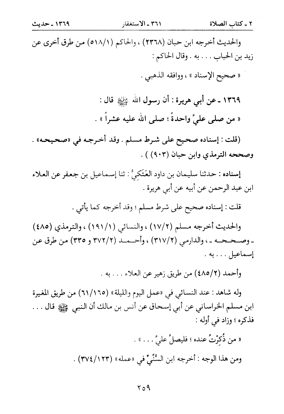 1369- عن أبي هريرة: أن رسول الله صَلَّى اللَّهُ عَلَيْهِ وَسَلَّمَ قال: