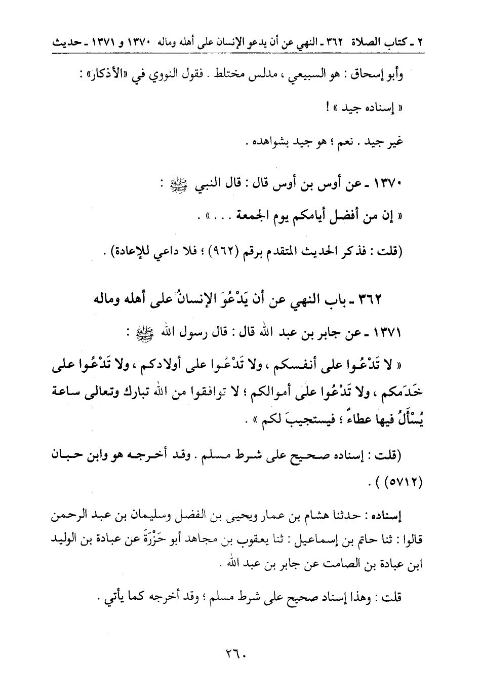 362- باب النهي عن أن يَدْعُوَ الانسانُ على أهله وماله