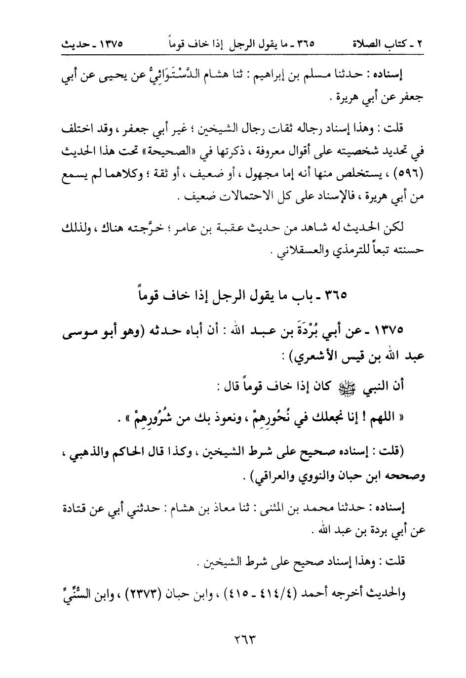 " اللهم! إنا نجعلك في نُحُورِهِمْ، ونعوذ بك من شُرُورِهِمْ ".