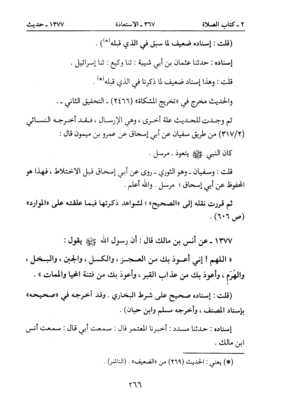 1377- عن أنس بن مالك قال: أن رسول الله صَلَّى اللَّهُ عَلَيْهِ وَسَلَّمَ يقول: