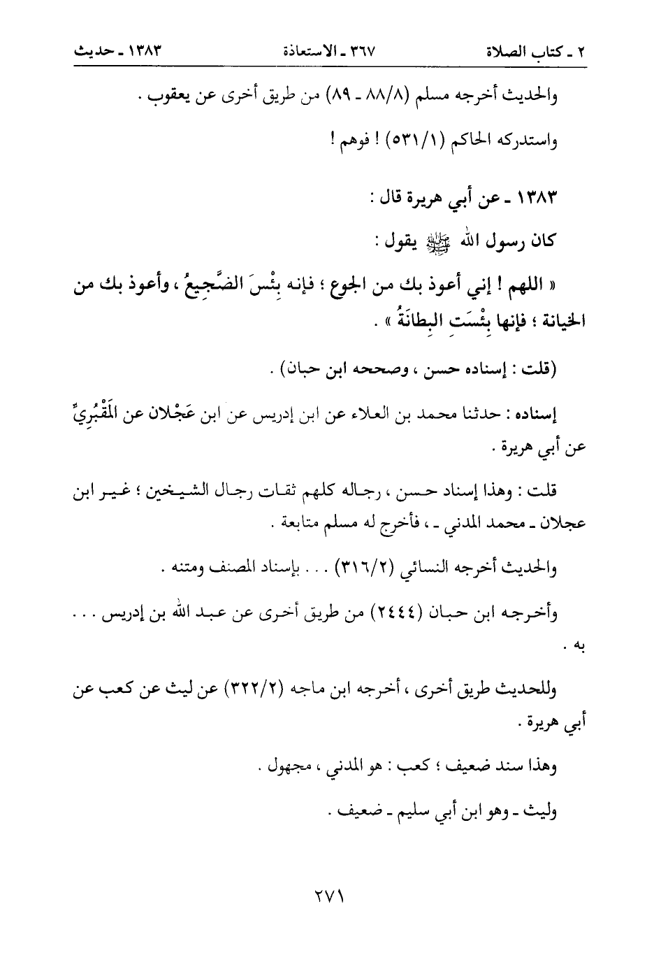 " اللهم! إني أعوذ بك من الجوع؛ فإنه بِئْسَ الضَّحِيعُ، وأعوذ بك من