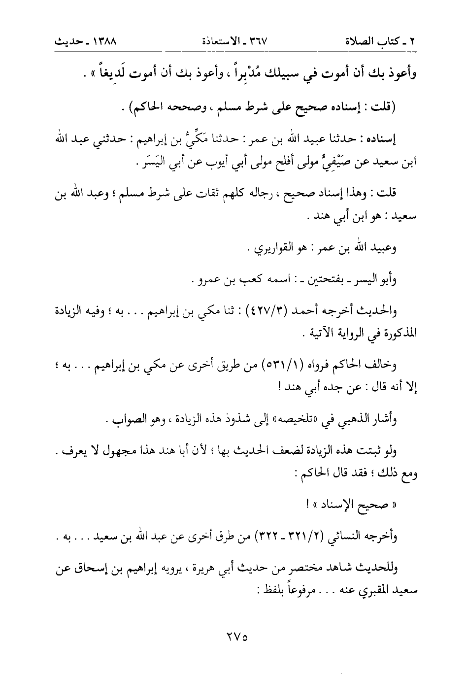 وأخرجه النسائي (2/321- 322) من طرق أخرى عن عبد الله بن سعيد.. به.