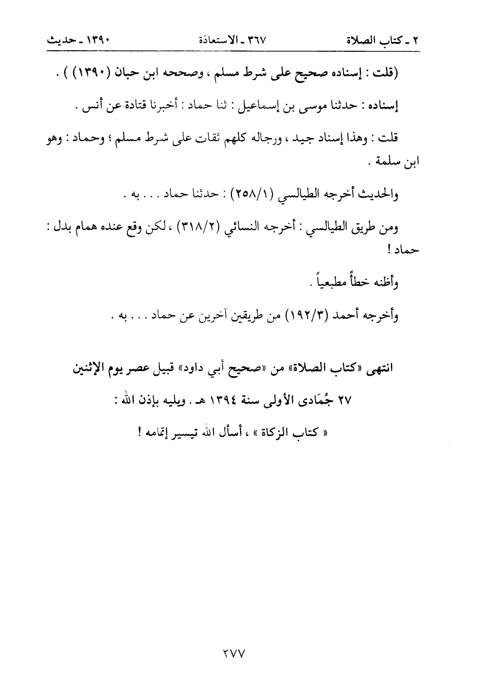 انتهى "كتاب الصلاة" من "صحيح أبي داود" قبيل عصر يوم الاثنين