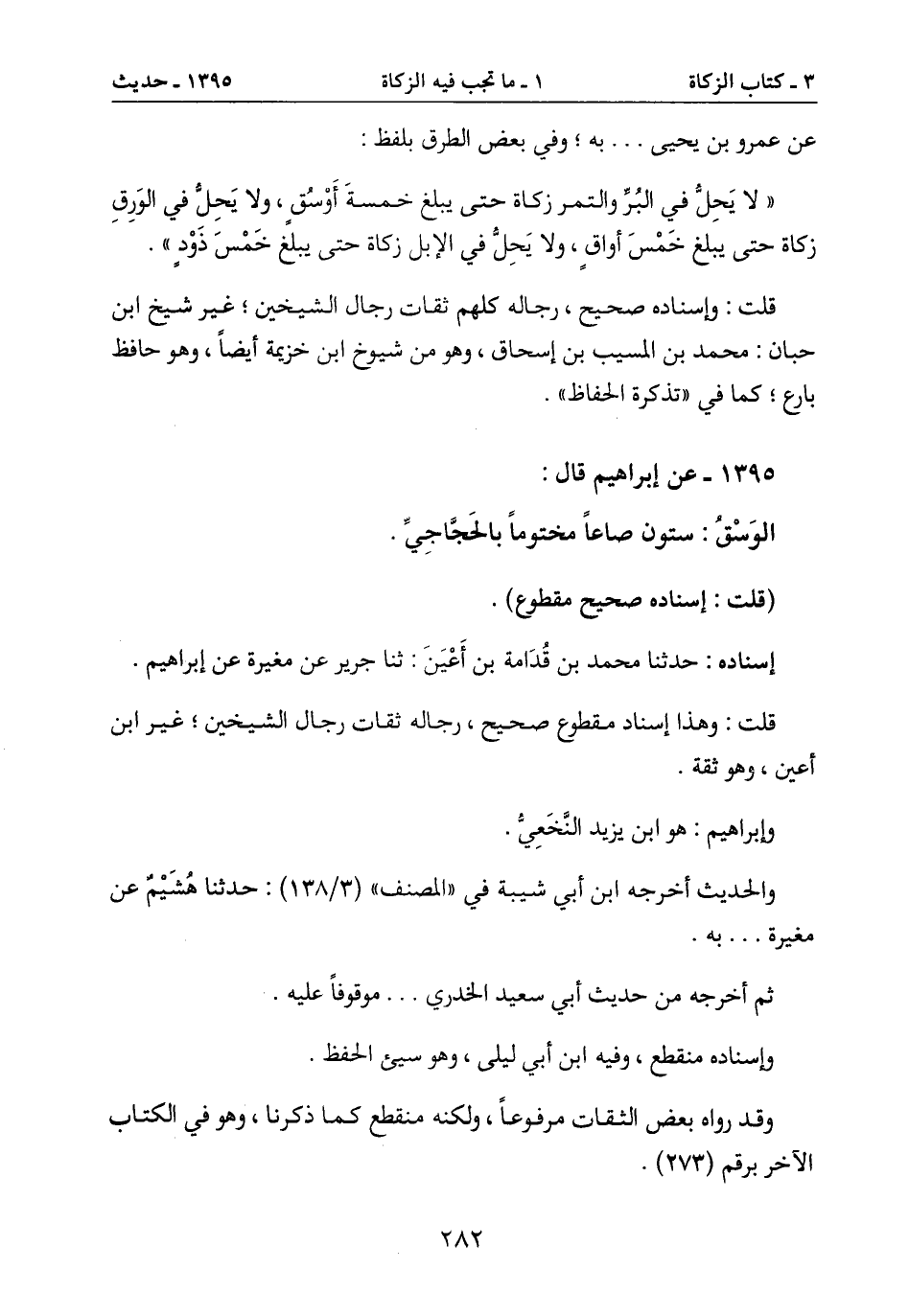 وقد رواه بعض الثقات مرفوعاً، ولكنه منقطع كما ذكرنا، وهو في الكتاب