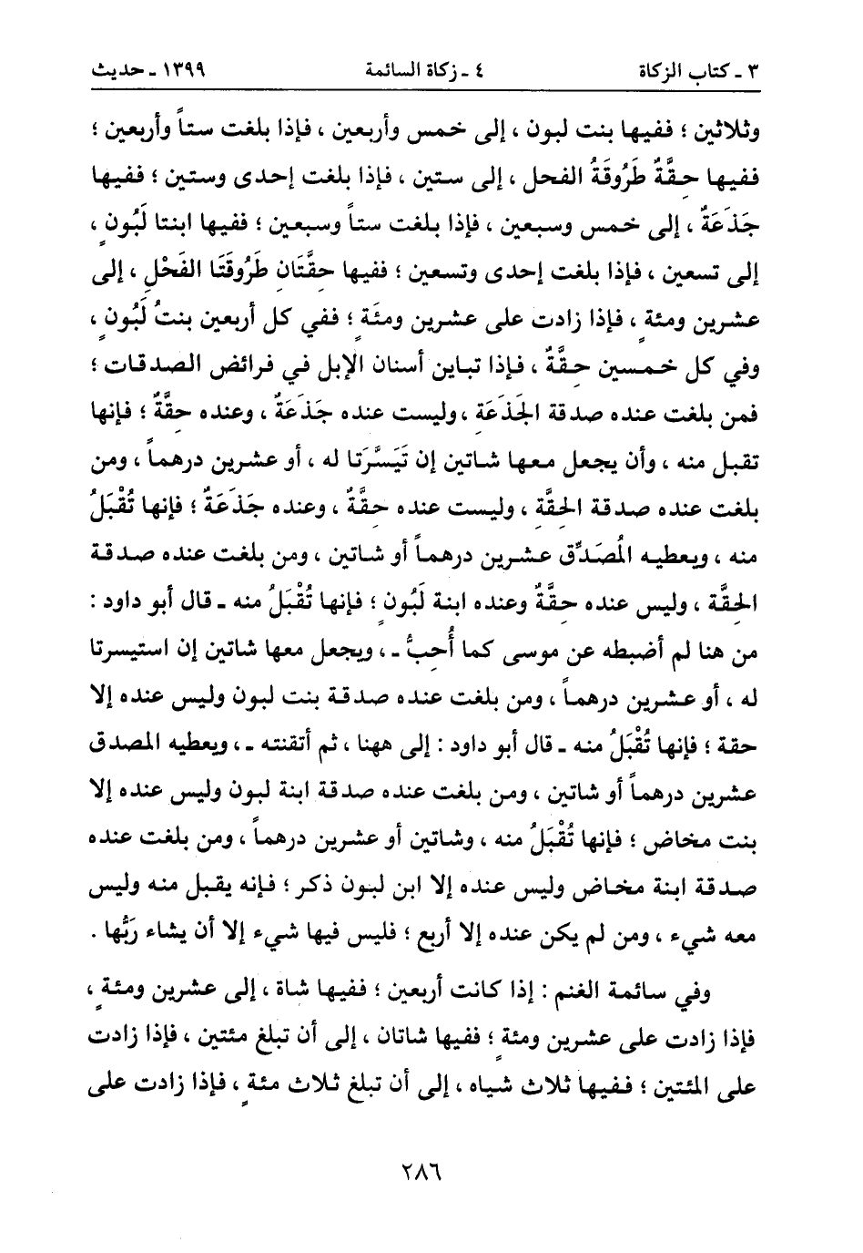جَذَعَةٌ، إلى خمس وسبعين، فإذا بلغت ستاً وسبعين؛ ففيها ابنتا لبَوُن،