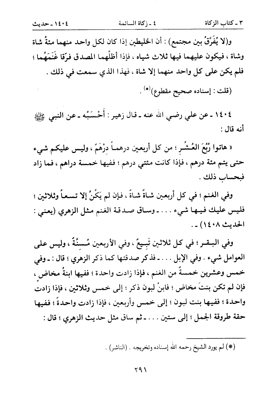 1404- عن علي رضي الله عنه- قال زهير: أحْسَبُه- عن النبي صَلَّى اللَّهُ عَلَيْهِ وَسَلَّمَ