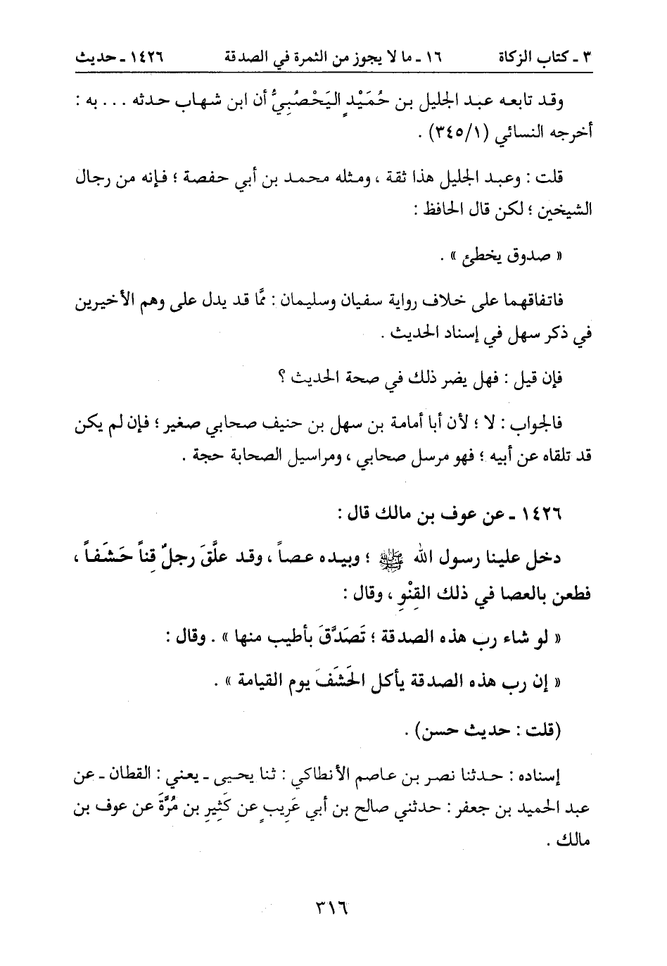عبد الحميد بن جعفر: حدثني صالح بن أبي عَرِيبٍ عن كثِيرِ بن مُرةَ عن عوف بن مالك.