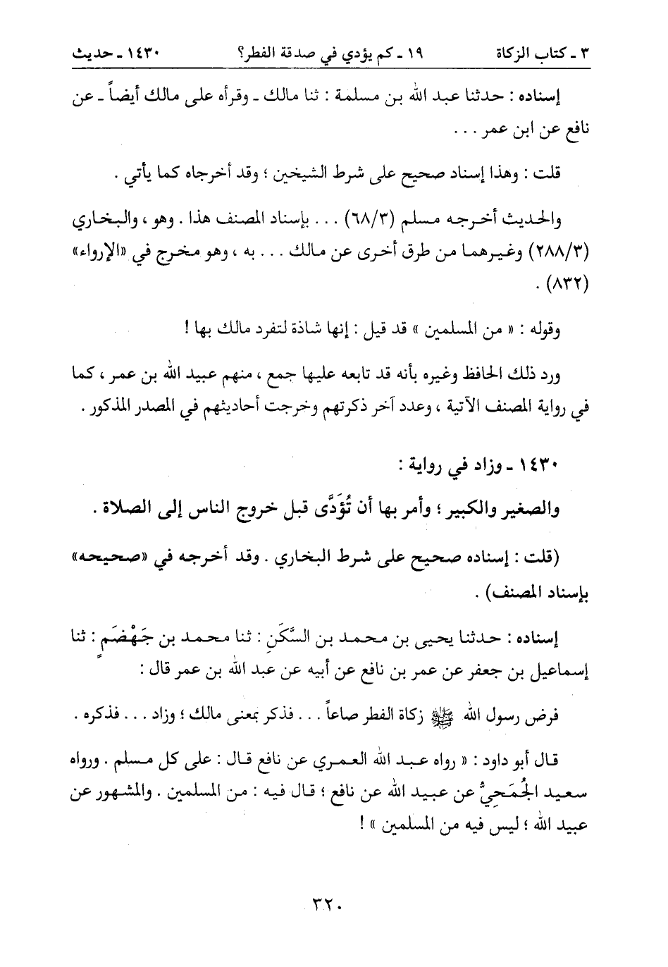 فرض رسول الله صَلَّى اللَّهُ عَلَيْهِ وَسَلَّمَ زكاة الفطر صاعاً ... فذكر بمعنى مالك؛ وزاد ... فذكره.