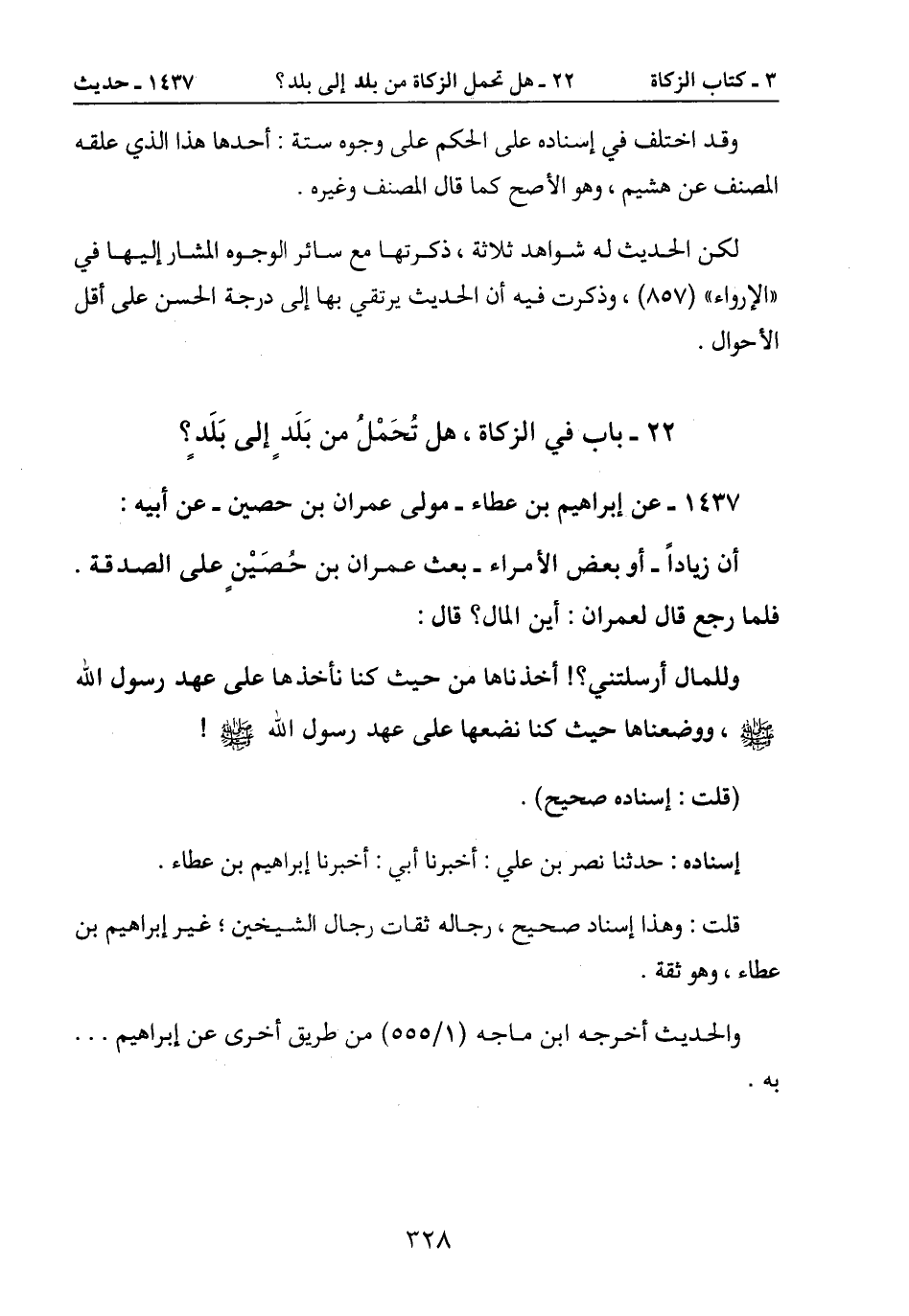 22- باب في الزكاة، هل تُحَمْلُ من بَلَد إلى بَلَد؟