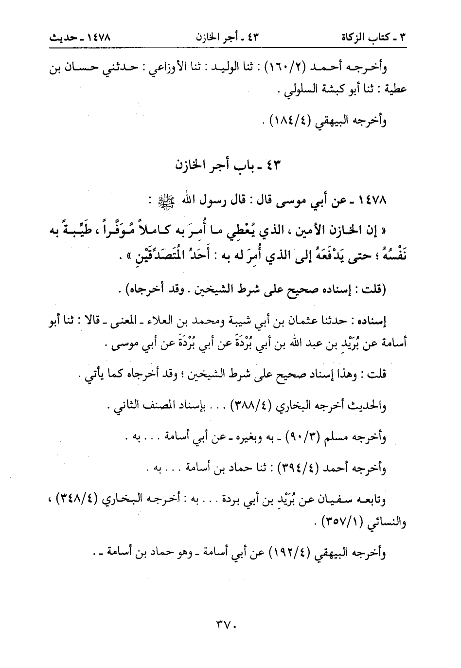 43- باب أجر الخازن