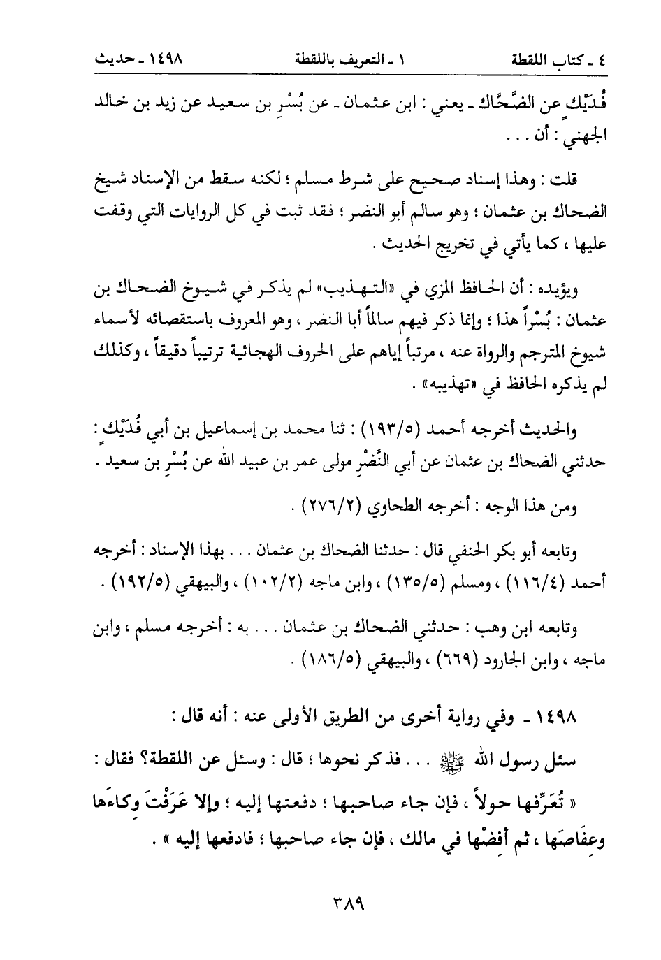 1498- وفي رواية أخرى من الطريق الأولى عنه: أنه قال:
