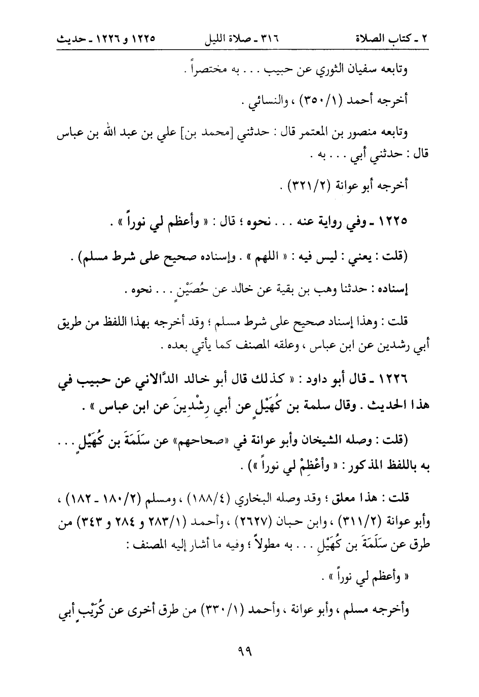به باللفظ المذكور: " وأعْظِمْ لي نوراً ") .