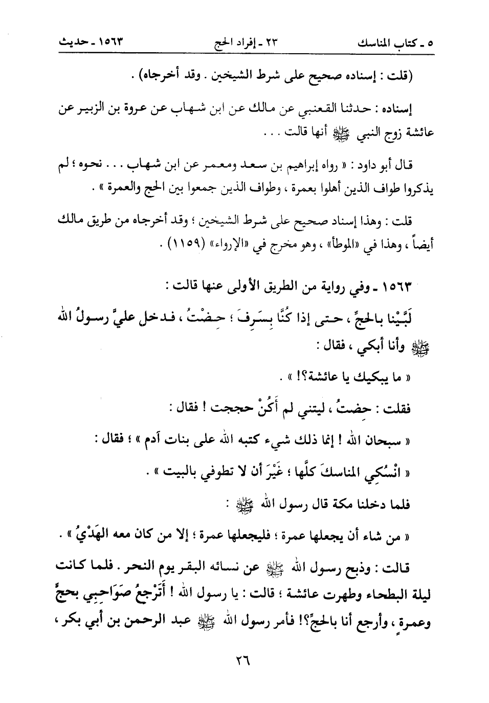 1563- وفي رواية من الطريق الأولى عنها قالت: