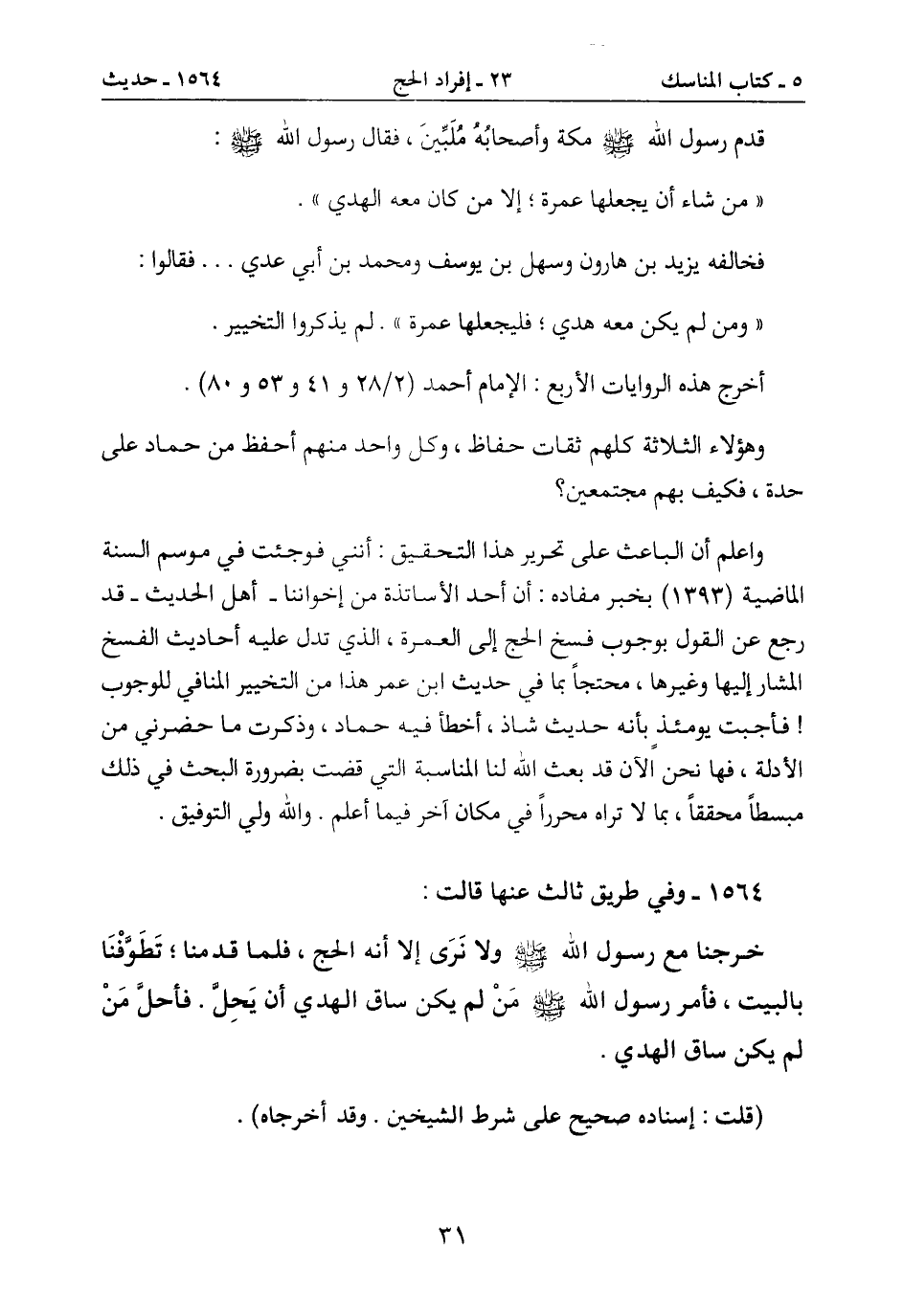 رجع عن القول بوجوب فسخ الحج إلى العمرة، الذي تدل عليه أحاديث الفسخ