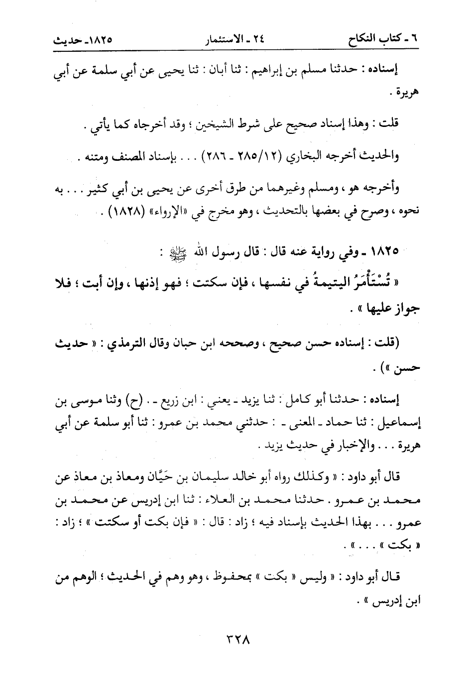 عمرو ... بهذا الحديث بإسناد فيه؛ زاد: قال: " فإن بكت أو سكتت "؛ زاد: