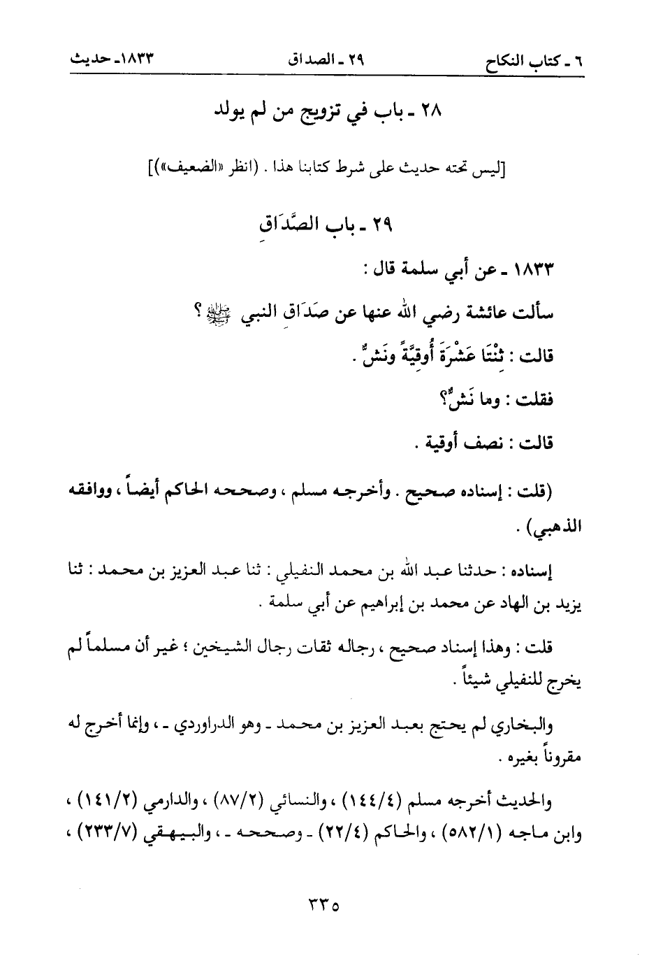 سألت عائشة رضي الله عنها عن صَدَاقِ النبي صَلَّى اللَّهُ عَلَيْهِ وَسَلَّمَ؟