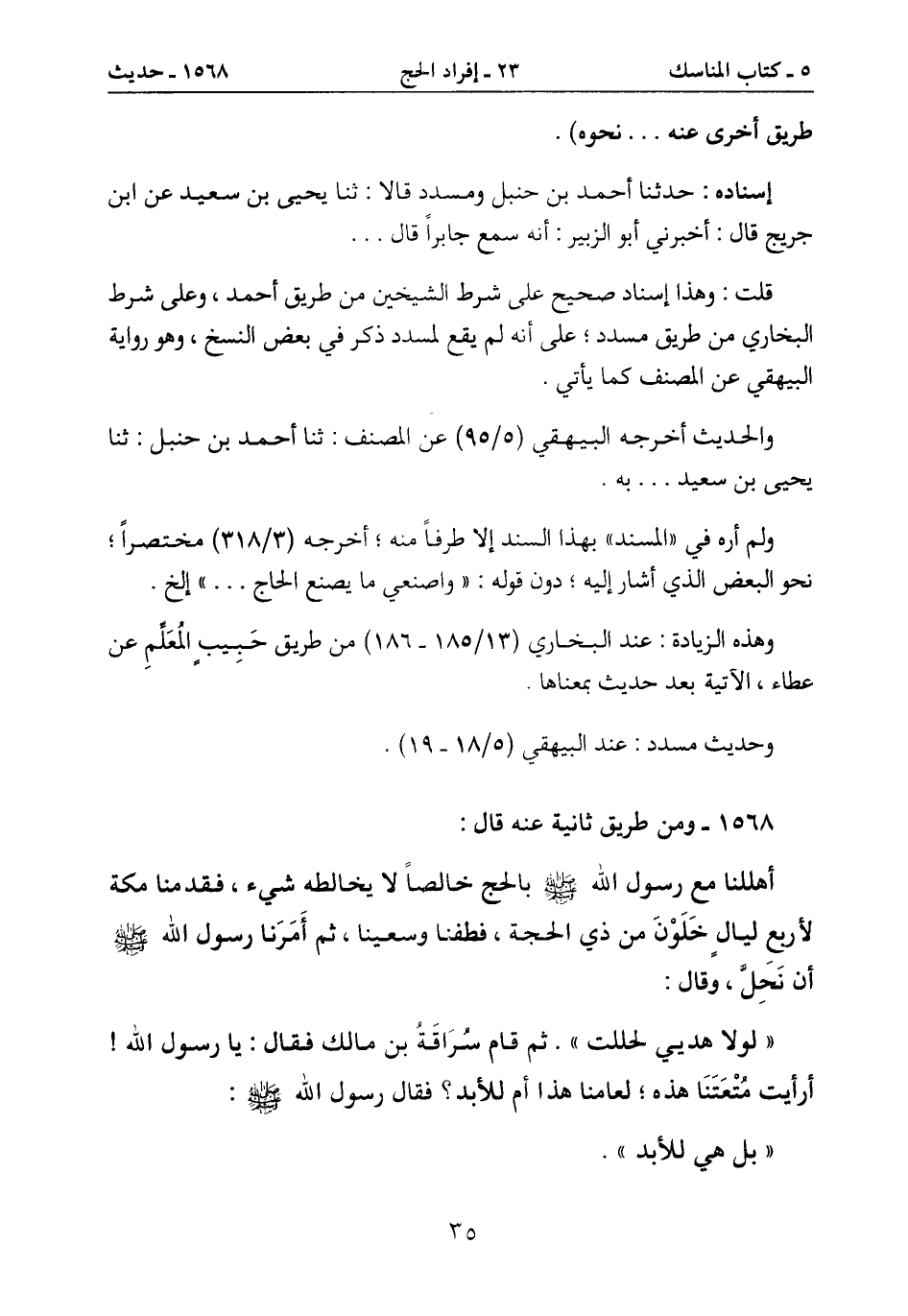 نحو البعض الذي أشار إليه؛ دون قوله: " واصنعي ما يصنع الحاج ... " إلخ.