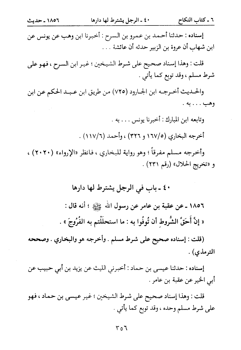 1856- عن عقبة بن عامر عن رسول الله صَلَّى اللَّهُ عَلَيْهِ وَسَلَّمَ؛ أنه قال: