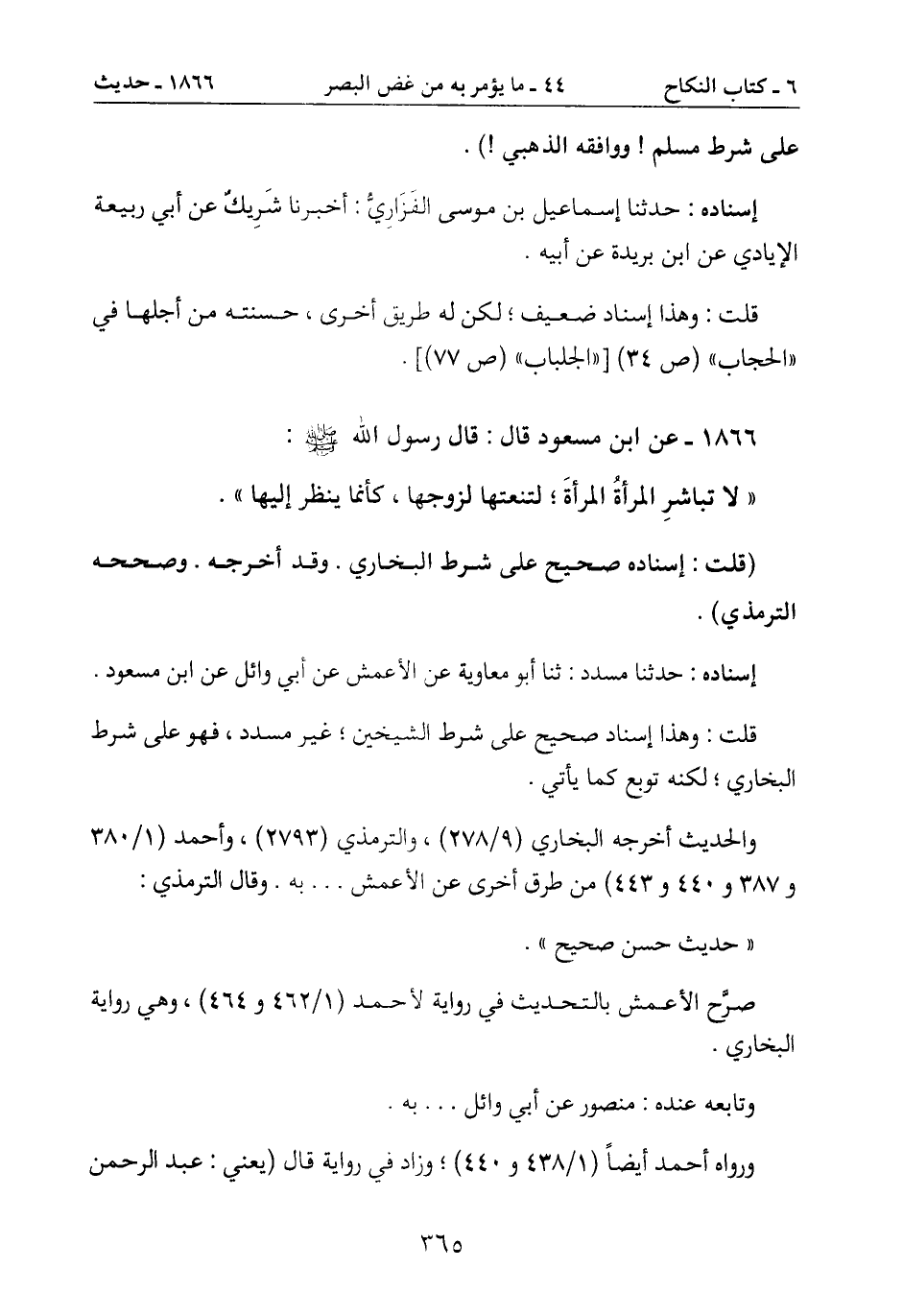 إسناده: حدثنا مسدد: ثنا أبو معاوية عن الأعمش عن أبي وائل عن ابن مسعود.
