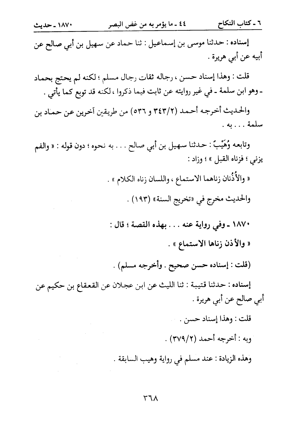 إسناده: حدثنا موسى بن إسماعيل: ثنا حماد عن سهيل بن أبي صالح عن