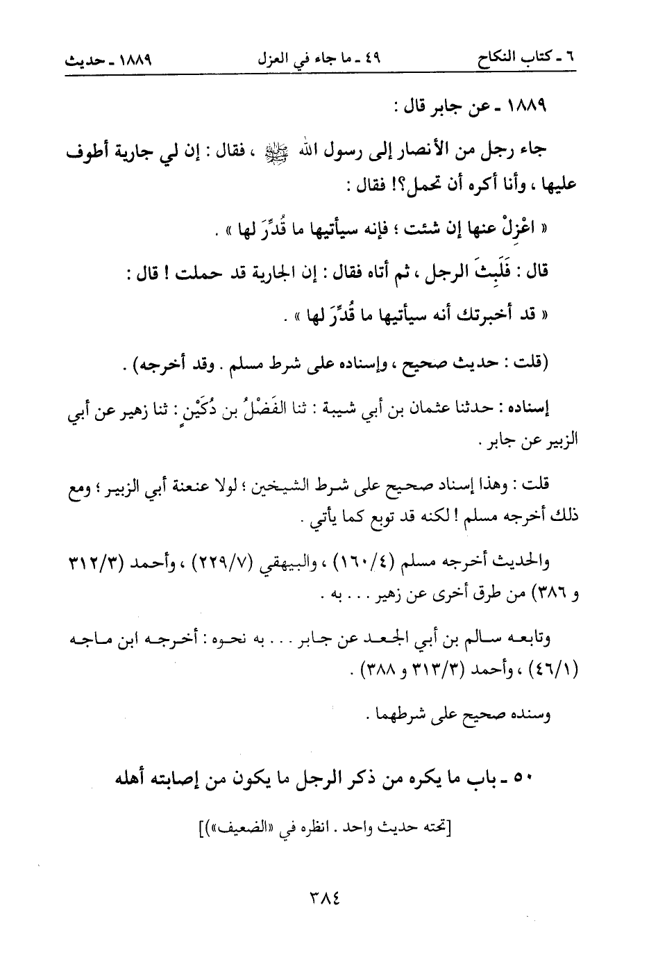 وتابعه سالم بن أبي الجعد عن جابر،.. به نحوه: أخرجه ابن ماجه