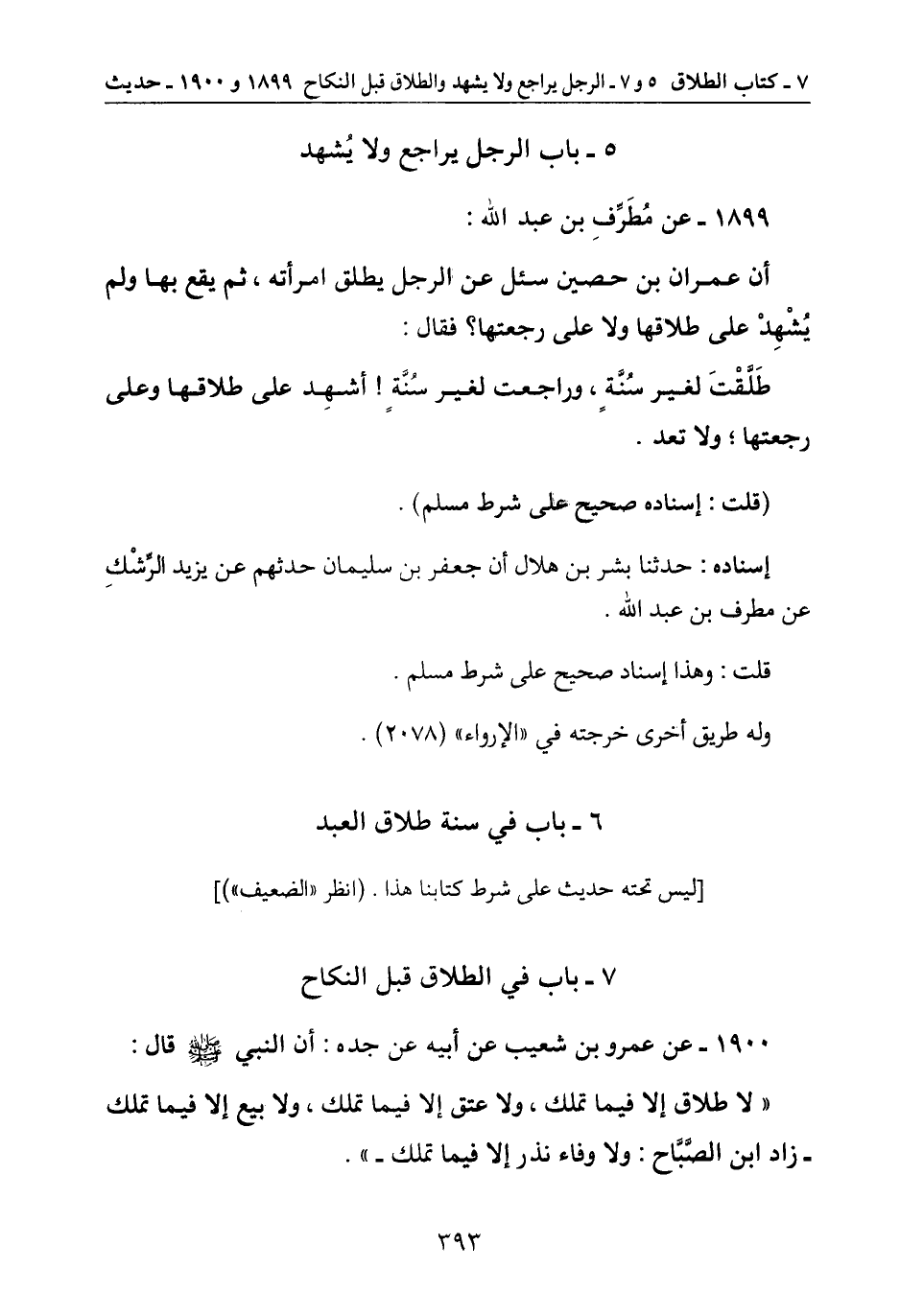 أن عمران بن حصين سئل عن الرجل يطلق امرأته، ثم يقع بها ولم