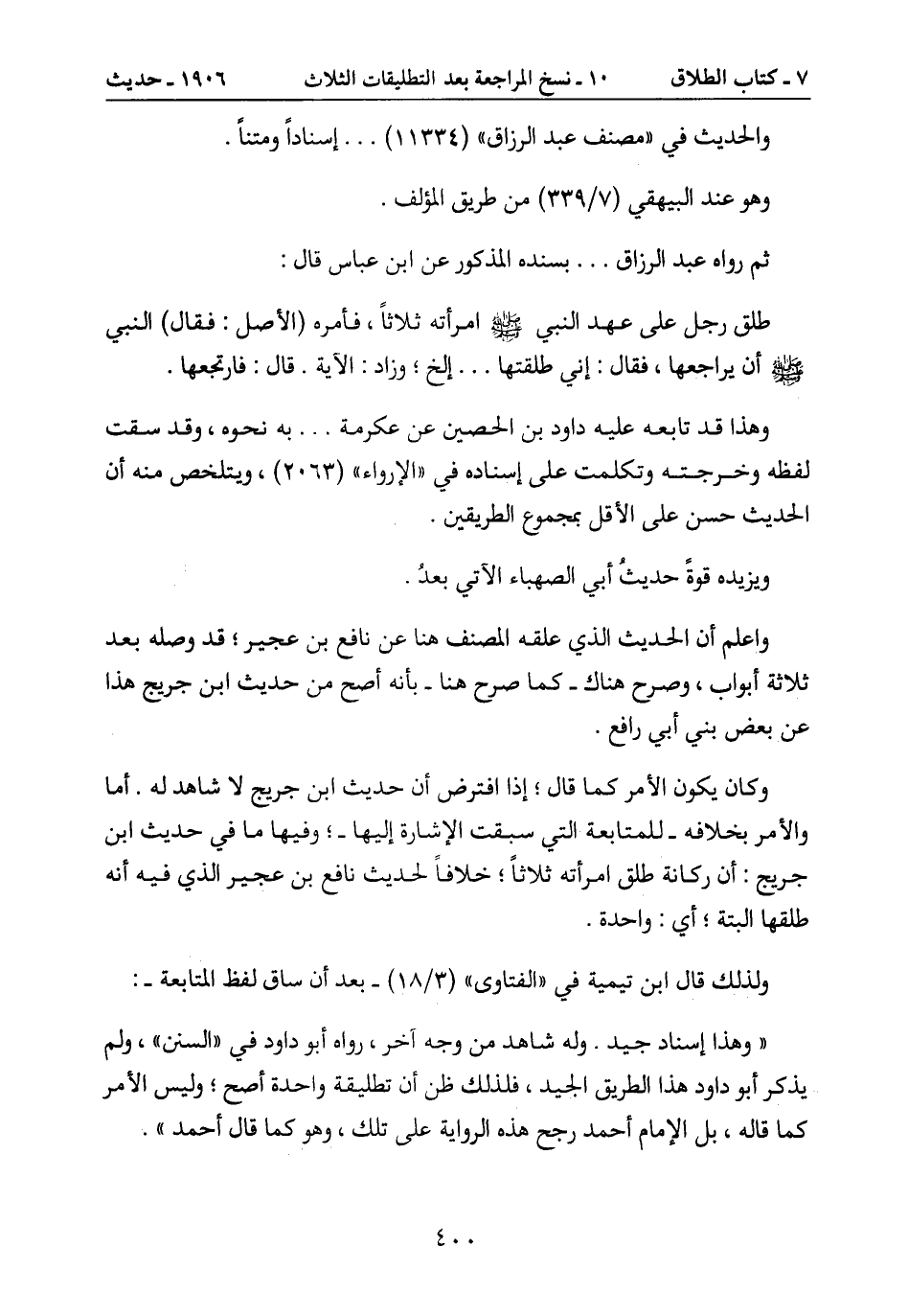 يذكر أبو داود هذا الطريق الجيد، فلذلك ظن أن تطليقة واحدة أصح؛ وليس الأمر