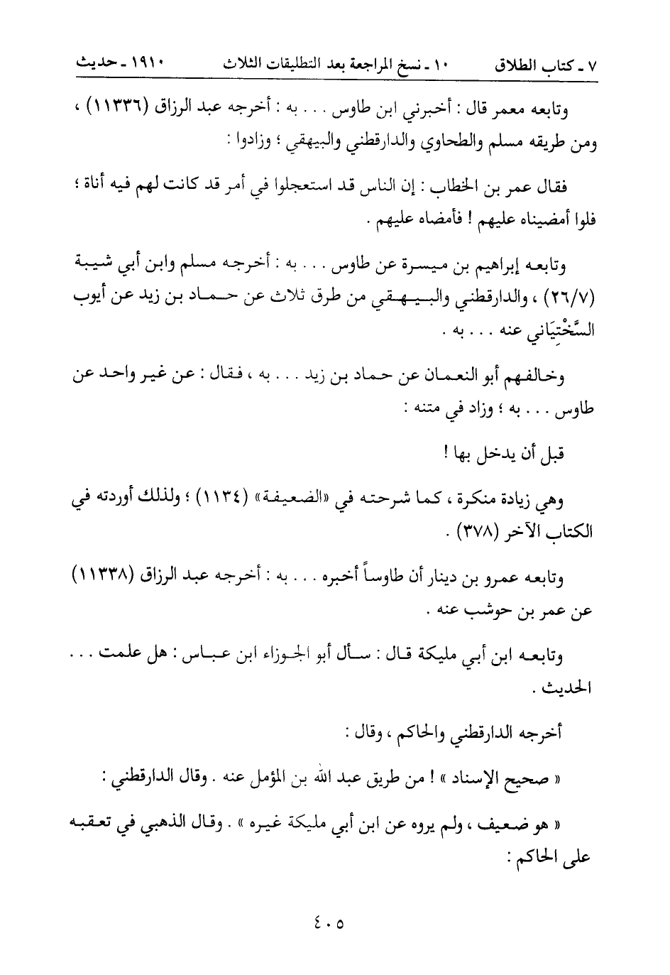 (7/26) ، والدارقطني والبيهقي من طرق ثلاث عن حماد بن زيد عن أيوب