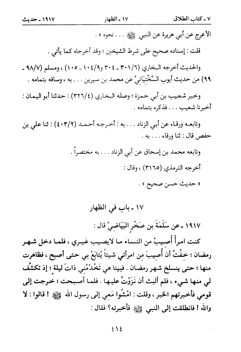 1917- عن سَلَمَةَ بن صَخْر البَيَاضِيِّ قال: