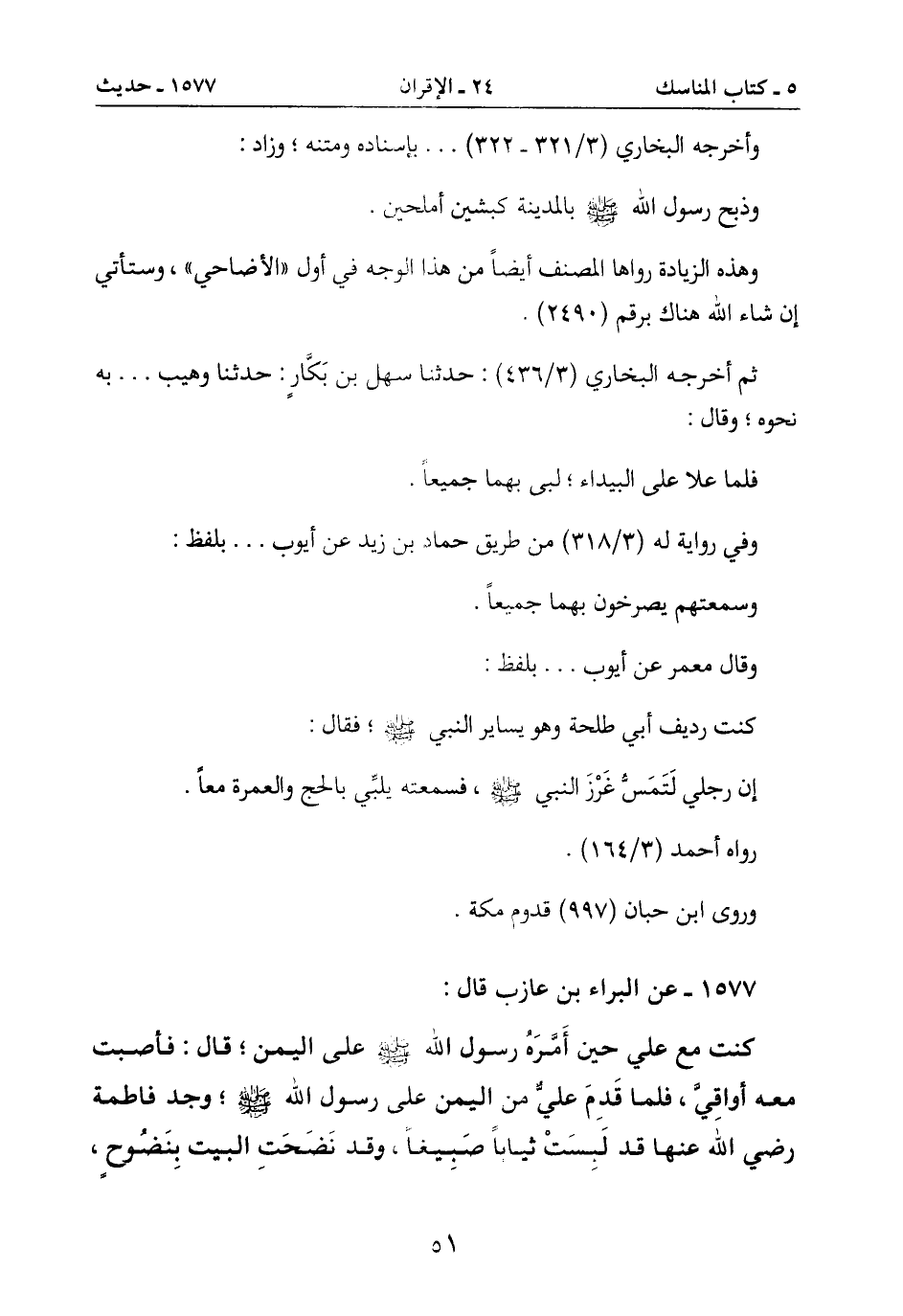 وهذه الزيادة رواها المصنف أيضاً من هذا الوجه في أول "الأضاحي"، وستأتي